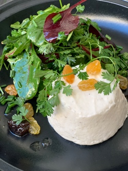 Blanc-manger vom Ziegenfrischkäse mit Kräutern und Salat