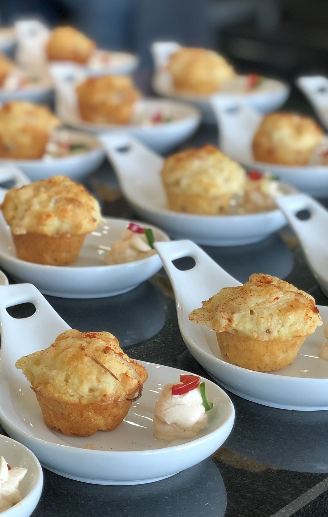 Mini-Muffins mit Schalotten, Speck und Cheddar